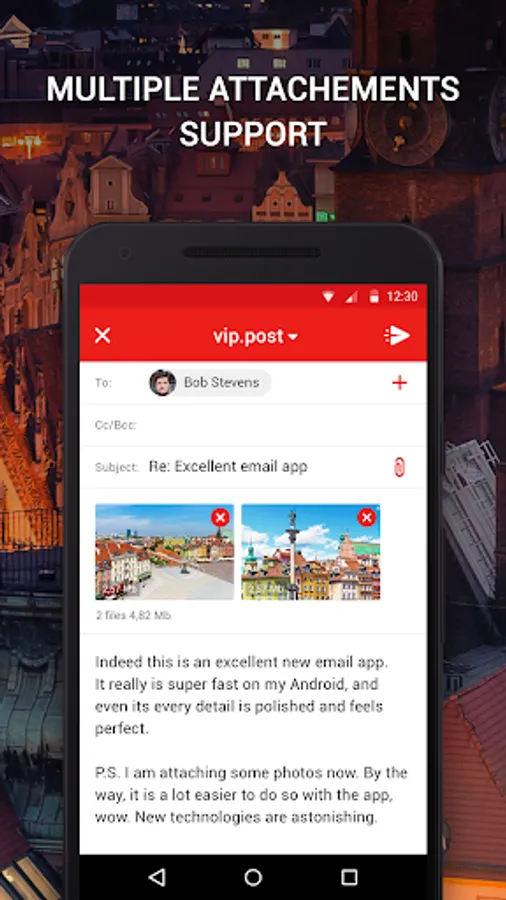 The app allows you to view, send, receive and forward messages, photos and files as well as to include multiple attachments in an efficient and easy way.