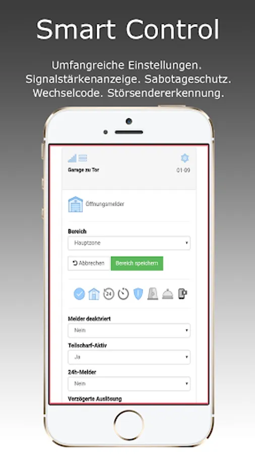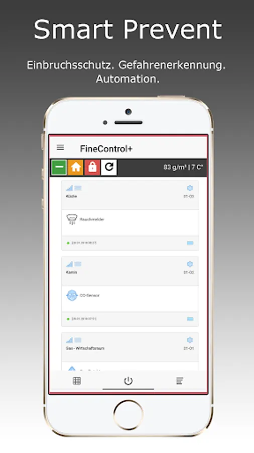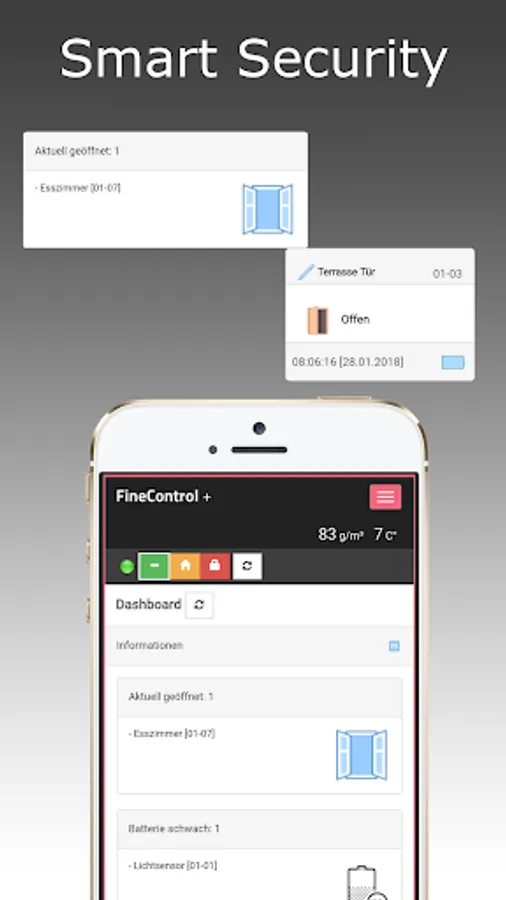 receive push notifications, e-mails, short messages and calls if a alarm or warning event occurs.