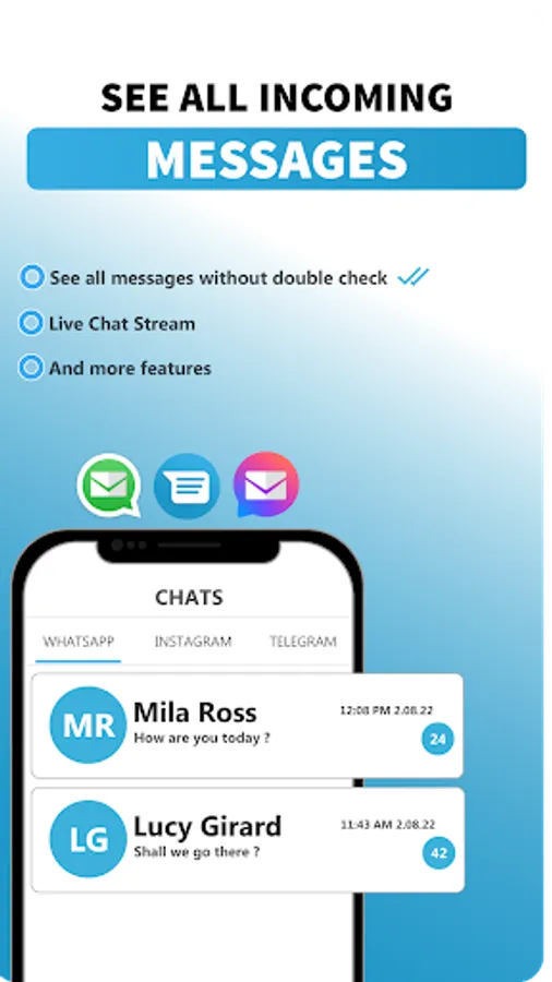 Follow the incoming messages live and read the messages without sending the "Read" information to the other party!
