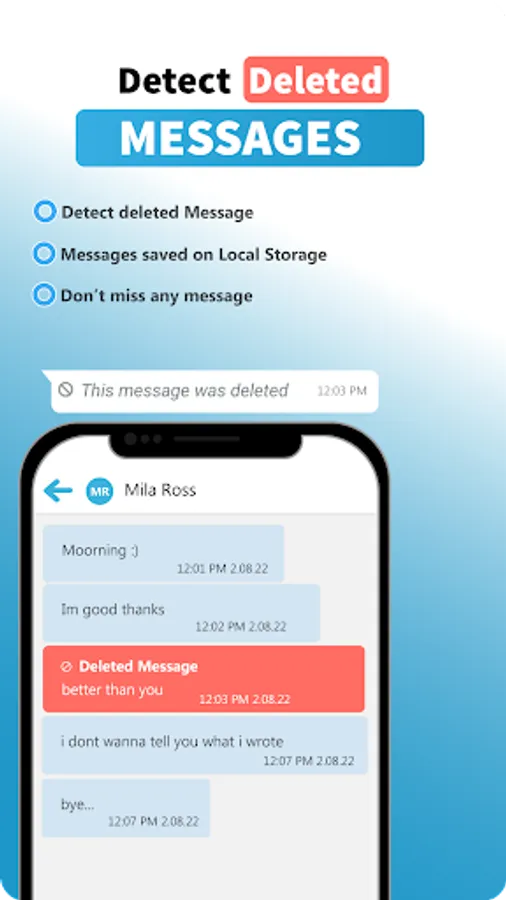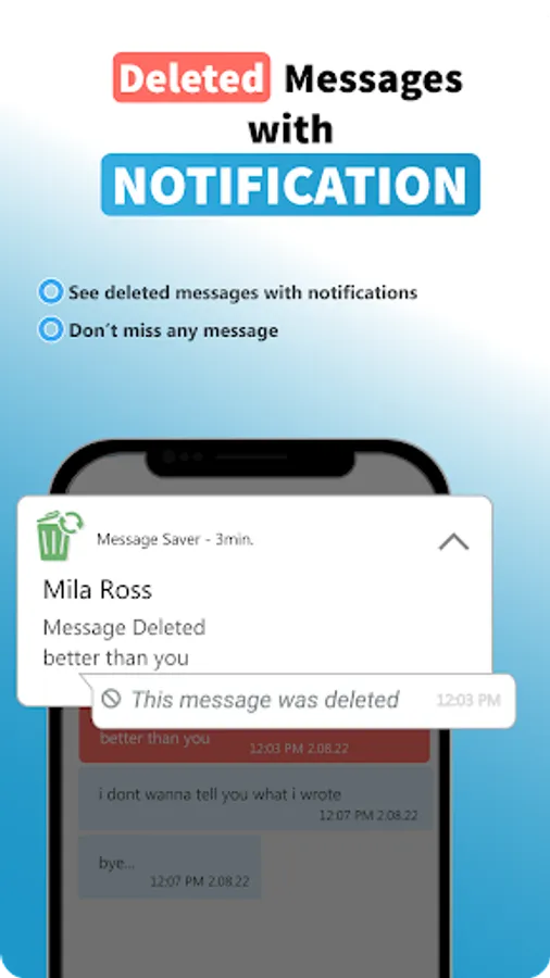 This application is just for you, do not miss incoming messages, detect deleted messages instantly!