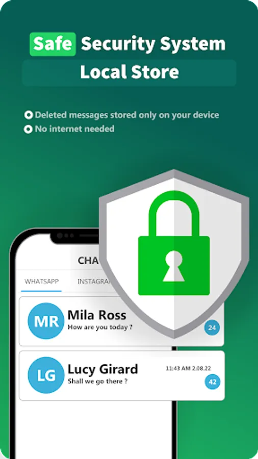 Whatsapp deleted messages, Telegram, Instagram and messages from other applications you want are read and registered only on your phone and are not shared with anyone else.