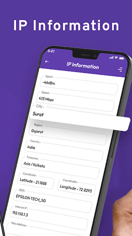 5. IP Information: IP related Informations like Speed, Signal, Internal IP Address, Mac Address, DNS etc.