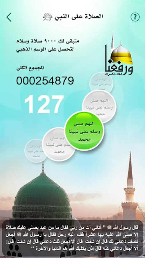 In this application, we exerted our best to obtain the excellence in the rivalry of spreading supplication for the best of humanity (Peace be upon him) among Muslims who supplicate for Allah’s Prophet (Peace be upon him) through the whole world. There is no need to mention names of rivals avoiding critical and Islamic warnings concerning devotion and concealing good deeds.