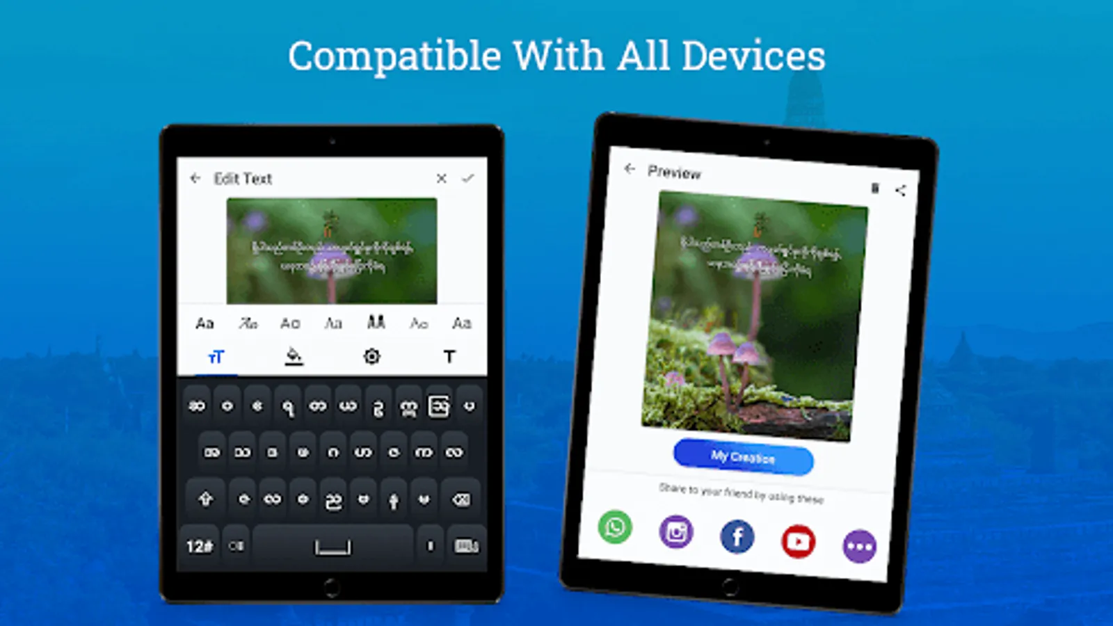 Are you looking for the best text on photo app? Yes! Your hunt ends here. This app is an amazing application to express your feelings in the form of words. Add amazing quotes with your own Burmese language on your photo and make your dear ones happy.