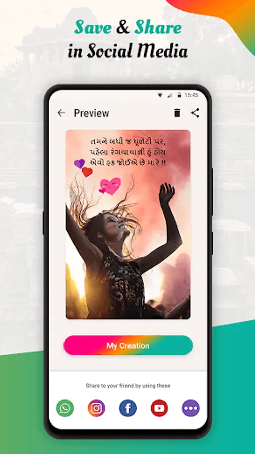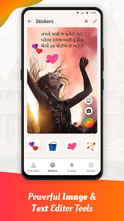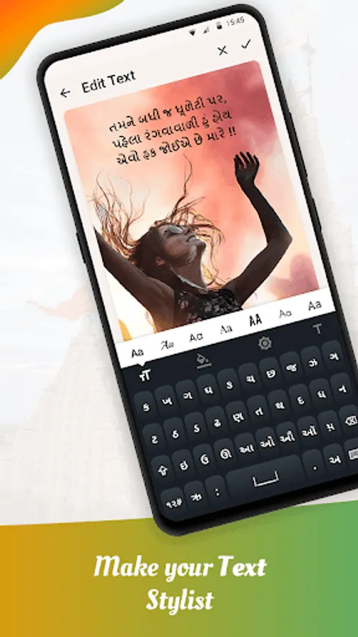 Now, you can write quotes, phrases, poetry on the Gujarati language easily with the help of this app on your selected photo from gallery or camera.