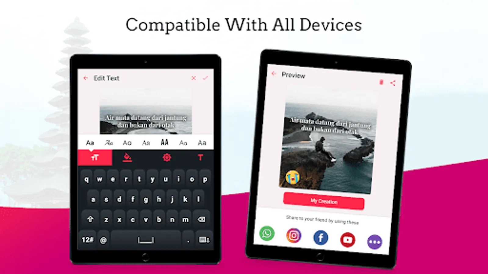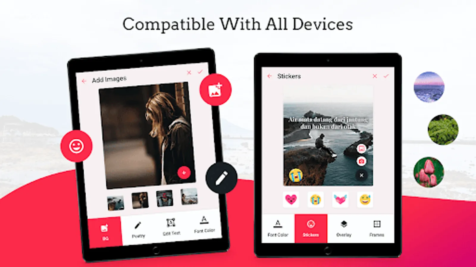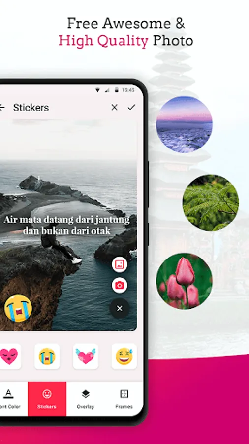 This App helps to write your quotes or poetry in your own language. This application has many features that make you create photos more charming. It has multiple background photos, 50+ funny stickers, text customization facilities, overlay effects and so on.