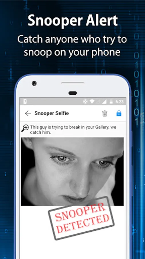 • Break-in Alert: Automatic Capture a picture of anyone who tries to creak the security & unlock apps behind you. You can also see & hide pictures of the snooper from inside gallery clock vault albums.