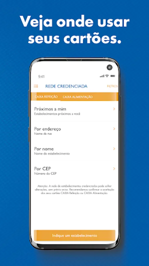 CAIXA Meal e Alimentação is an application where you can find everything about your benefit. In addition, the app has services and facilities such as: balance inquiry, statement, accredited network and much more. With each purchase, you receive a notification confirming the amount and if your favorite establishment does not accept your card, you can indicate it through the app itself. Download for free!