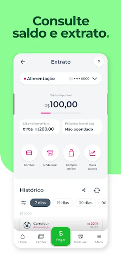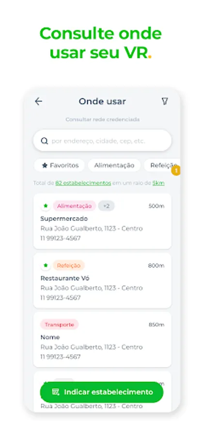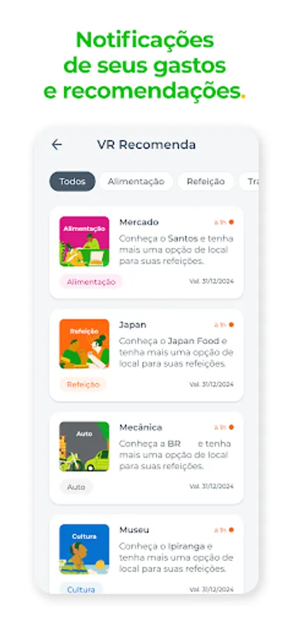 An application that you find everything about your benefit, has other services, promotions and facilities in the palm of your hand. See balance, statement and our accredited network. Receive confirmation of purchase by push with value spent and the location in each use you make. Receive exclusive promotions and recommendations from places near you that accept your VR Benefits card.