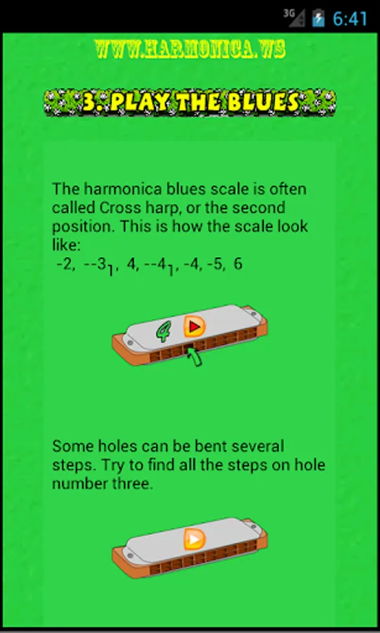 Ever wanted to become a great harmonica player? This app guarantees that you successfully will become an awesome blues jammer in only a few minutes.