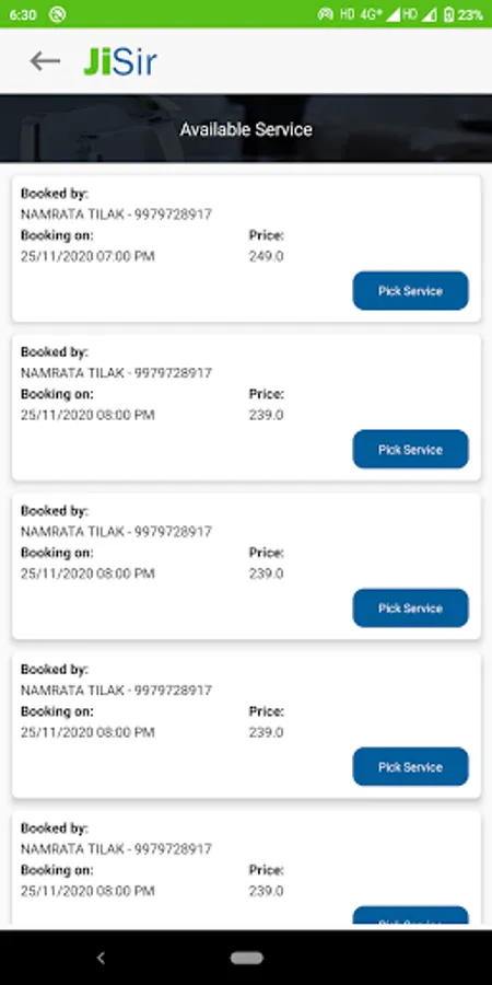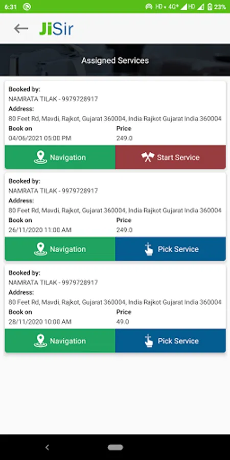 Once serviceman get registered here then it gets related services Notification and serviceman can pick service from the app .