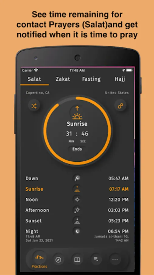 Location based accurate Prayer Times based on your current location and Current Local Time.