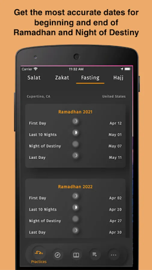 This app also allows users to most accurately determine the correct direction of Qiblah from anywhere in the world with great precision in both Compass Mode and Map Mode based on user's current location.