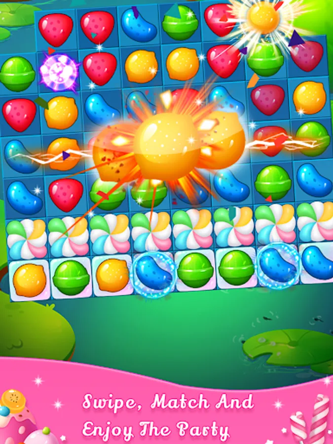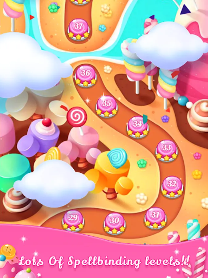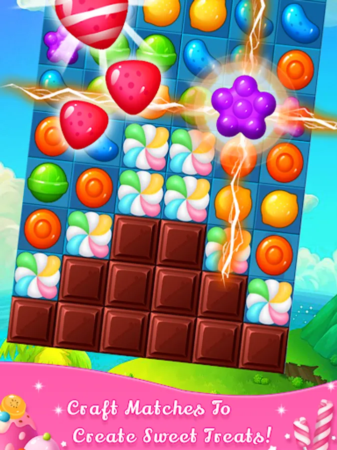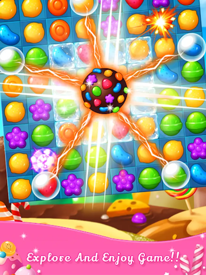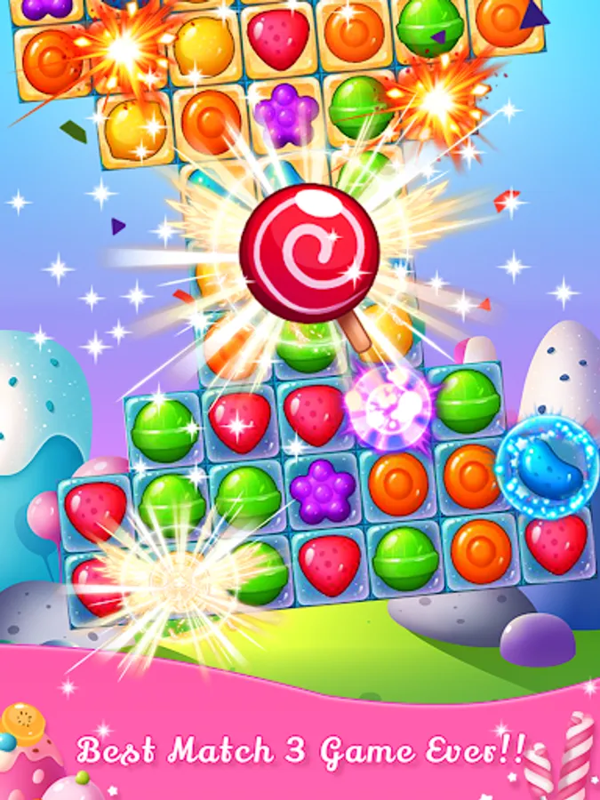 Welcome to the story of sweet candies!? There are so much delicious candies while exploring the addictive candy game. Match and crush your way through hundreds of sweet levels in this delicious puzzle adventure. Reach the goal before the moves run out! These amazingly tasty puzzles are ready to satisfy your sweet teeth!