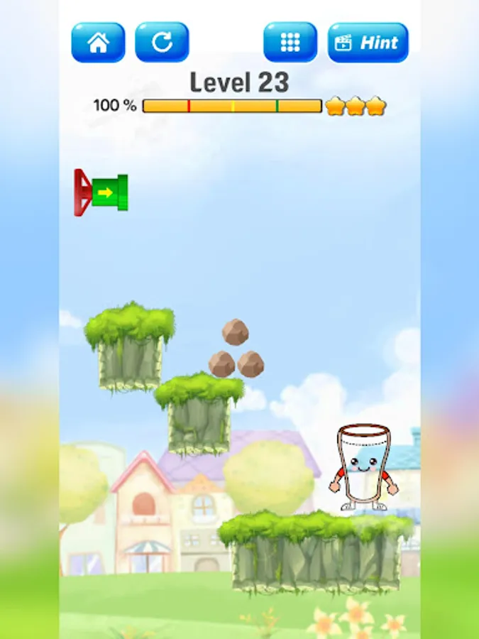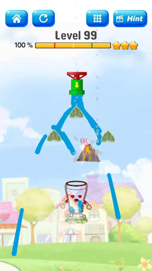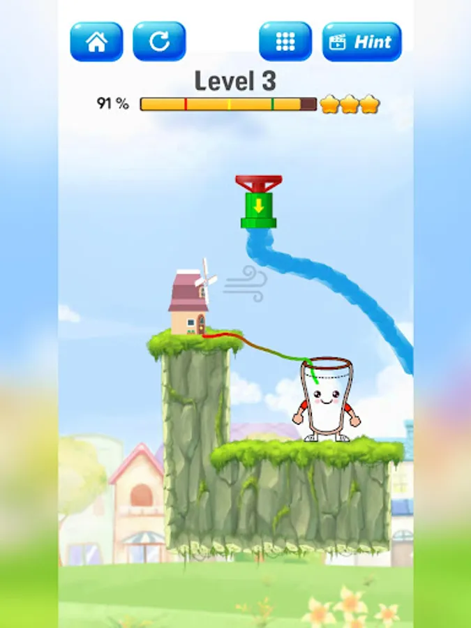 Each level has obstacles you'll have to work around, as well as platforms that can help you get the water into the glass cup. To beat each level, just get enough water in the glass to fill it to the dotted line.