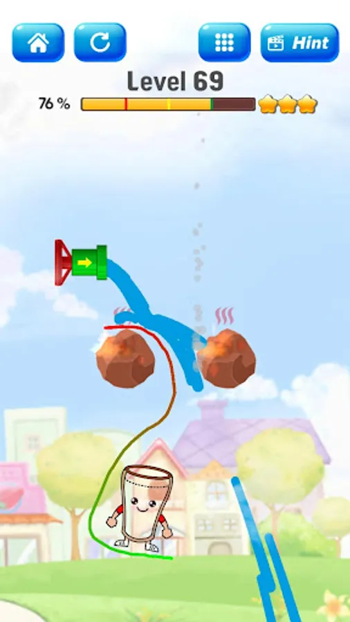 1. The glass is sad because it's empty. Your job is to draw a weave the line to make the glass filled up with liquid and smile again! Draw ultra sharp lines freely to complete levels, you will need your wisdom and imagination.