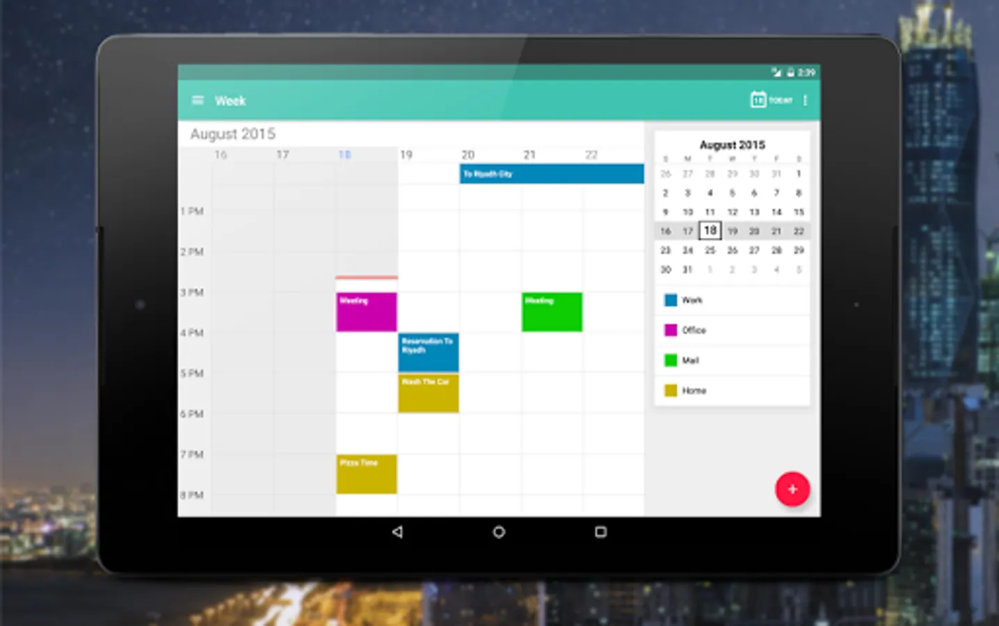 - Uses Android calendar sync. Works with Google Calendar, Exchange..etc.