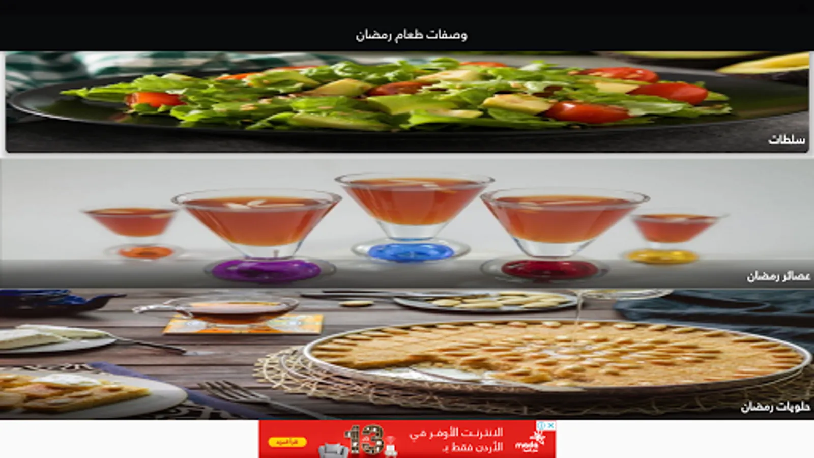 The application includes recipes for eastern and western food, in addition to appetizers, salads, juices and desserts