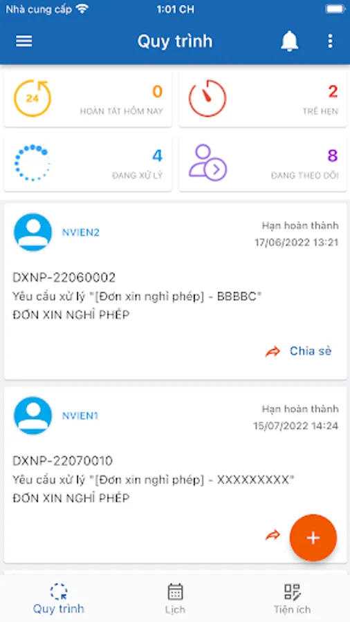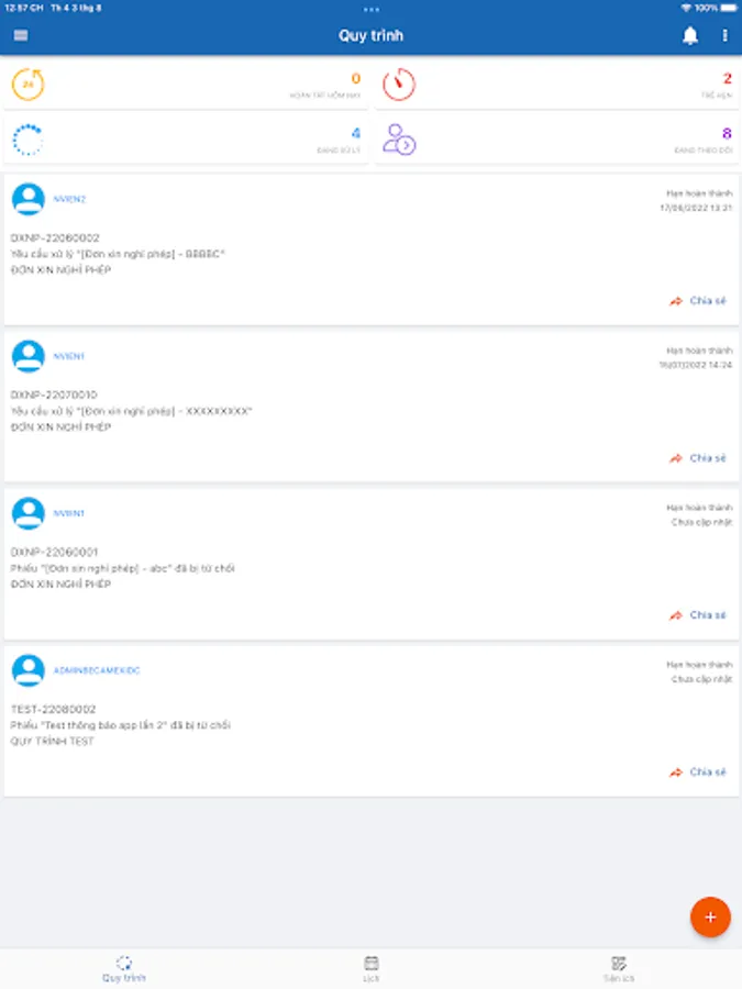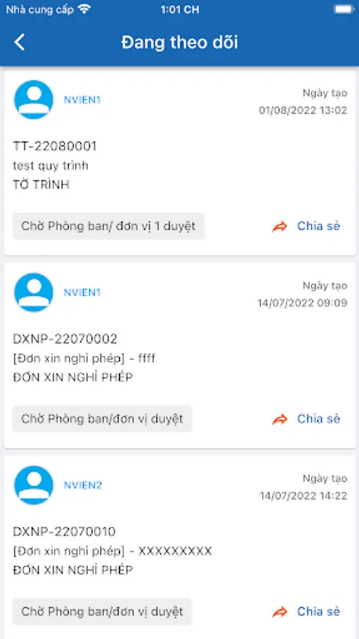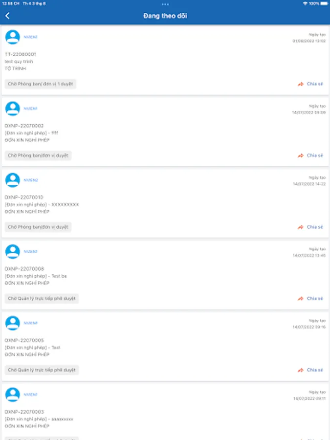Electronic office application of WTC Binh Duong company. Features include: