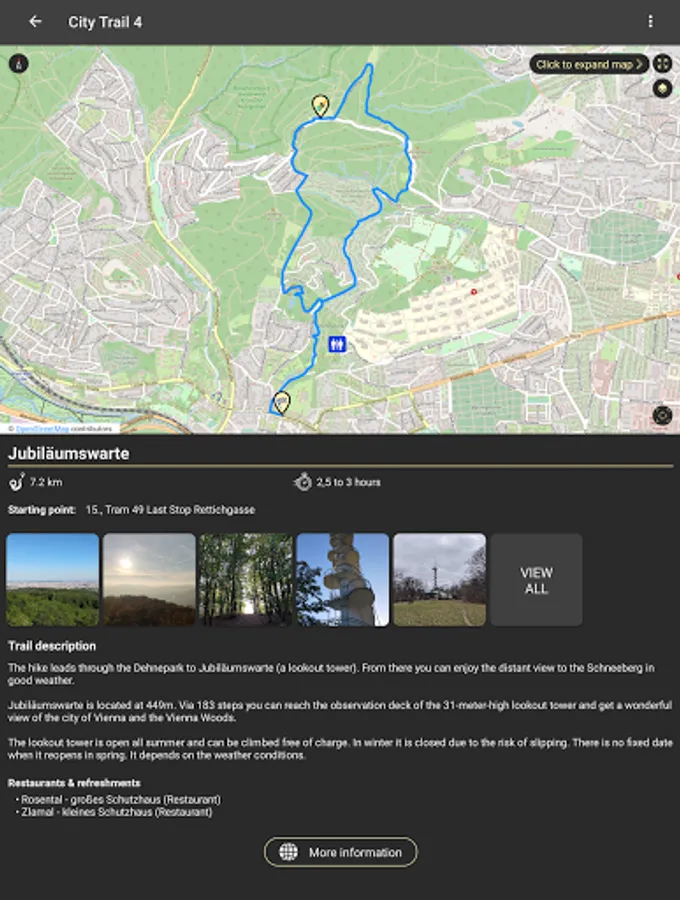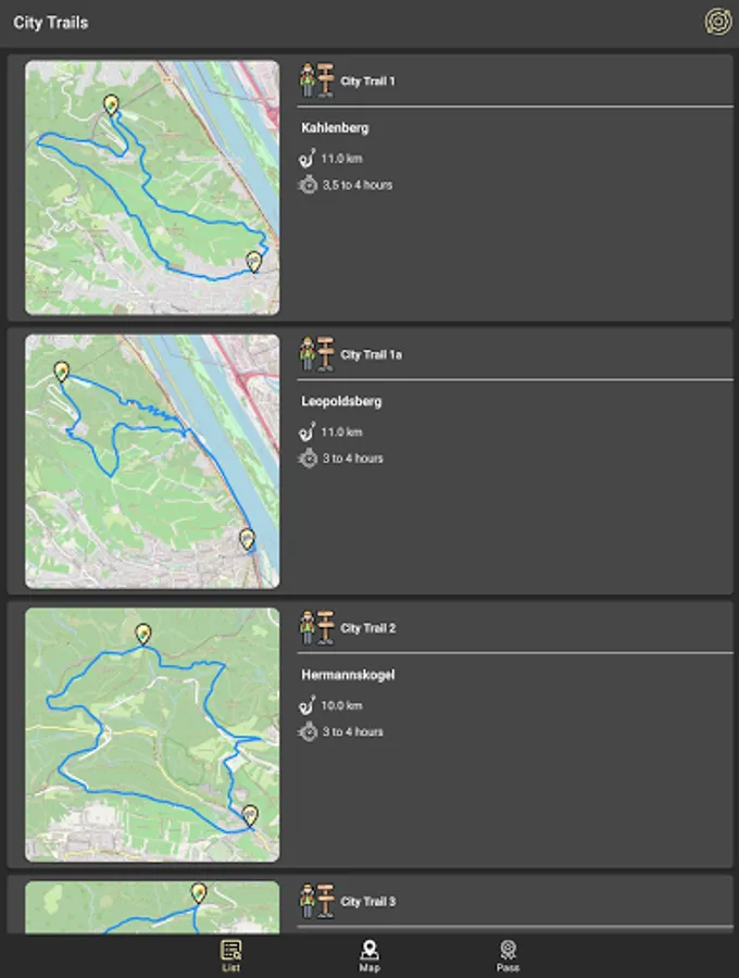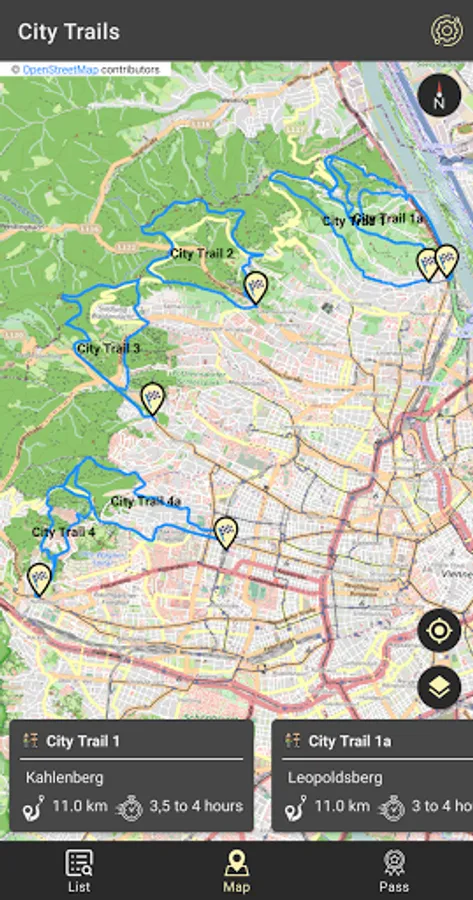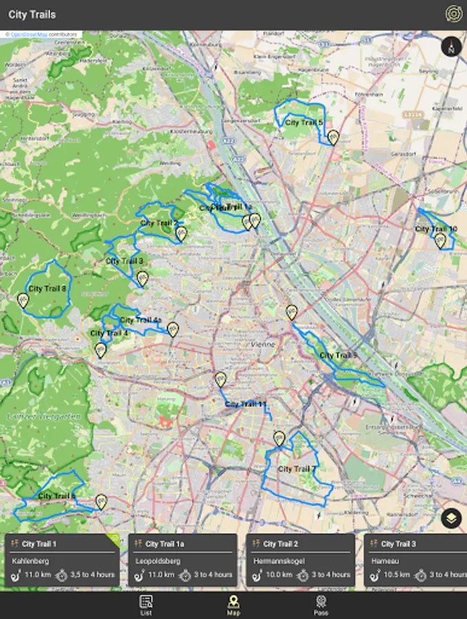The CityHikes app is intended to provide an overview of the city hiking trails in Vienna. It is intended to be used both for planning a hike on a city hiking trail and for navigation during the hike.