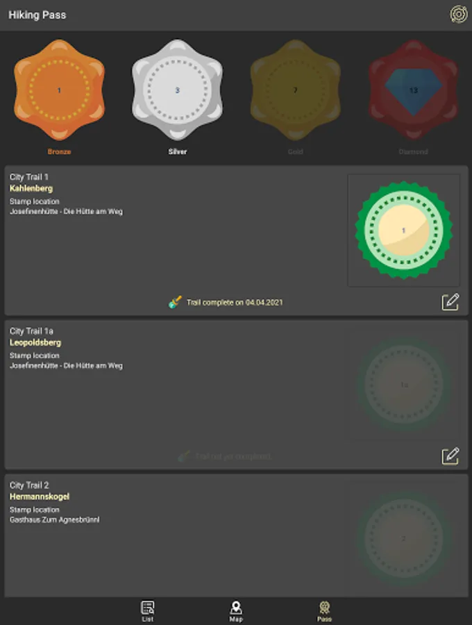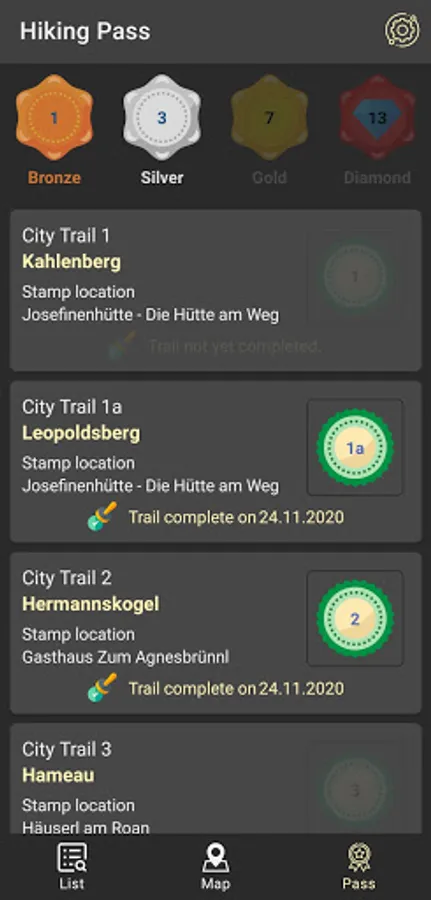 The app includes a digital hiking pass that lets you collect stamps for hiking the city hiking paths. Collecting stamps will earn you hiking badges.