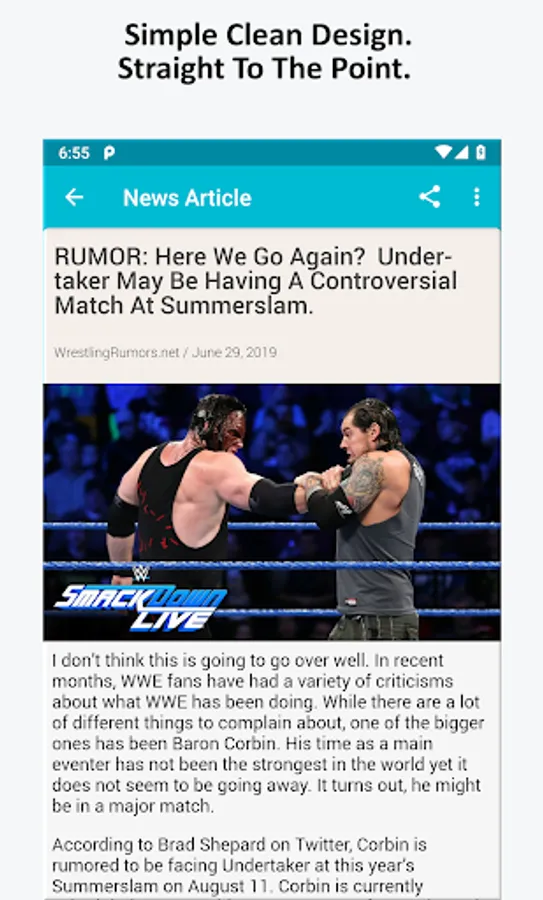 Simple and easy to use, Wrestling News is the most solid and robust app available to WWE Wrestling fans using Android phones and tablets.
