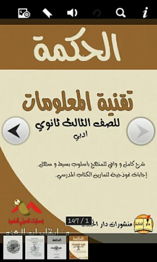 This book provides a complete explanation and Wafi subjects textbook material Information Technology for the third year in secondary education in Libya, and the approach presents a simple style and easy, with clarification of examples and practical exercises to help students understand and accommodate the course understanding and accommodating full.