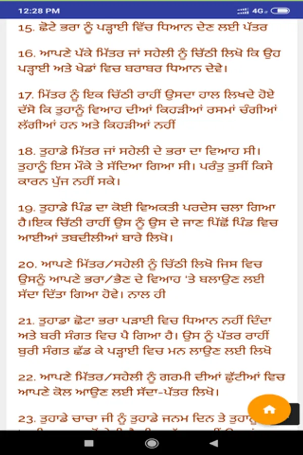 Worlds First "Punjabi Letters App" on various categories. In this app user can read various kinds of Punjabi Letters. This app is specially design for School, College Students. The students of Class 7, 8, 9, 10 and 12 of CBSE and PSEB can easily find all kinds of Punjabi Letters. App has various categories of Punjabi Letters Like: