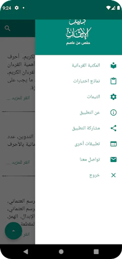 The application represents a collection of Hafs’s narration on the authority of Asim by Al-Shatbya from the book “Guide to Perfection in Recitation of the Qur’an”, designed with the aim of facilitating students of science and practitioners the path of mastering the provisions of recitation and intonation, through simplified and easy presentation methods that will communicate information in the simplest and shortest ways.
