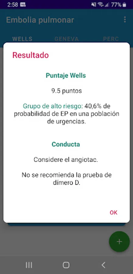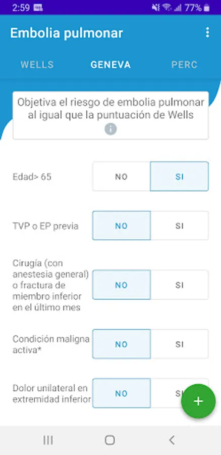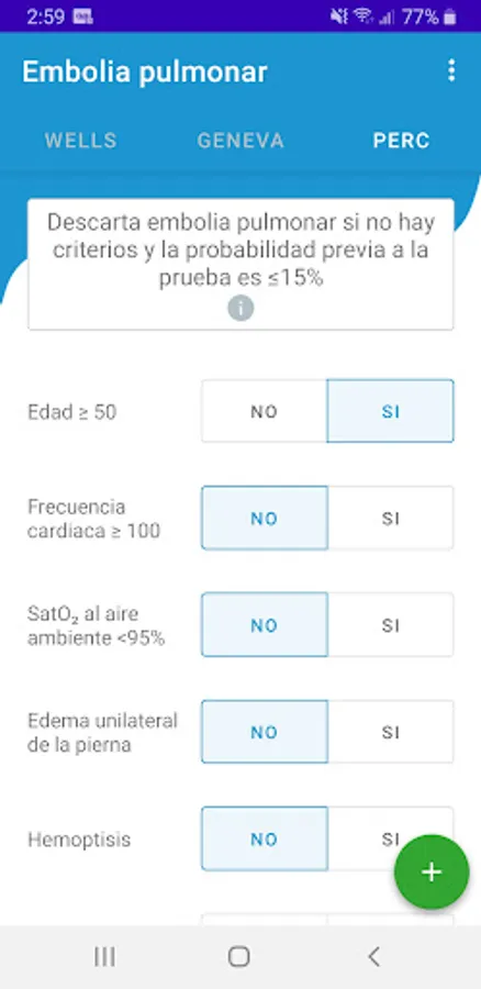 With the Mosa App: Pulmonary Embolism: Wells - Geneva - PERC you will help you determine the risk of pulmonary embolism using the Wells criteria, the Geneva score and the PERC rule. The Wells criteria for pulmonary embolism are a risk stratification score and a clinical decision rule to estimate the probability of acute pulmonary embolism in patients in whom the history and examination suggest that acute pulmonary embolism is a diagnostic possibility.