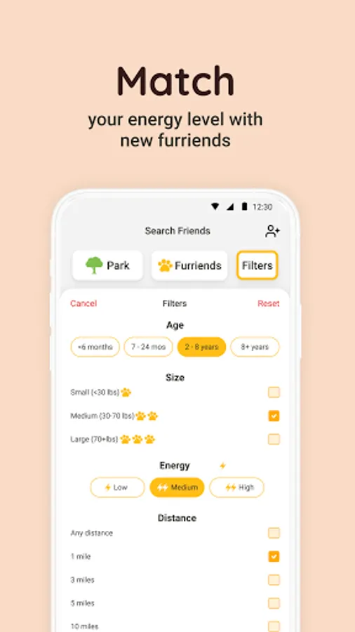 Find new furriends near you who match your energy level;