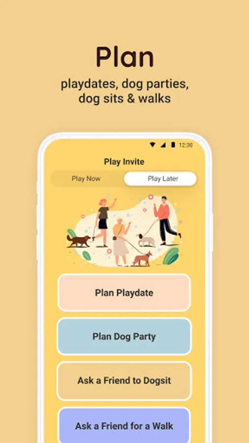 PLAN play dates, dog parties, dog sitting and dog walks with other pawrents