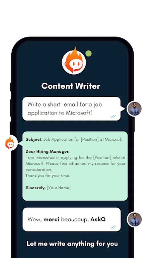 AskQ هو روبوت محادثة ذكي يقدم خدمات الاتصال وإنشاء المحتوى باللغات المتعددة مع قدرات إنشاء الصور. يمكّن التواصل السلس في أكثر من 80 لغة، ويكسر حواجز اللغة ويحسّن مشاركة العملاء. صمم الروبوت لتلبية احتياجات الشركات من جميع الأحجام والصناعات، مما يوفر تجربة شخصية لكل مستخدم.