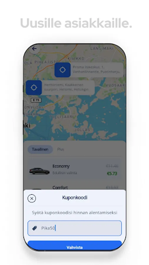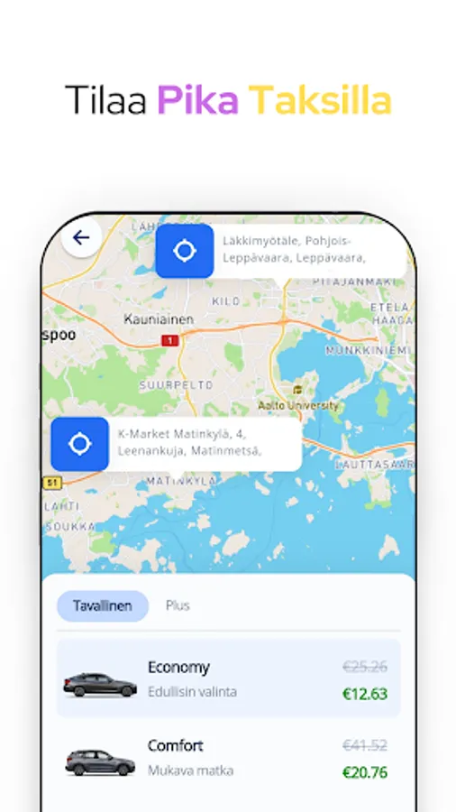 Pika Taksi is a new taxi brokerage service operating in Helsinki, which is designed to offer its customers fast and affordable rides. The application has been developed to meet the needs of city dwellers in a modern and user-friendly way.