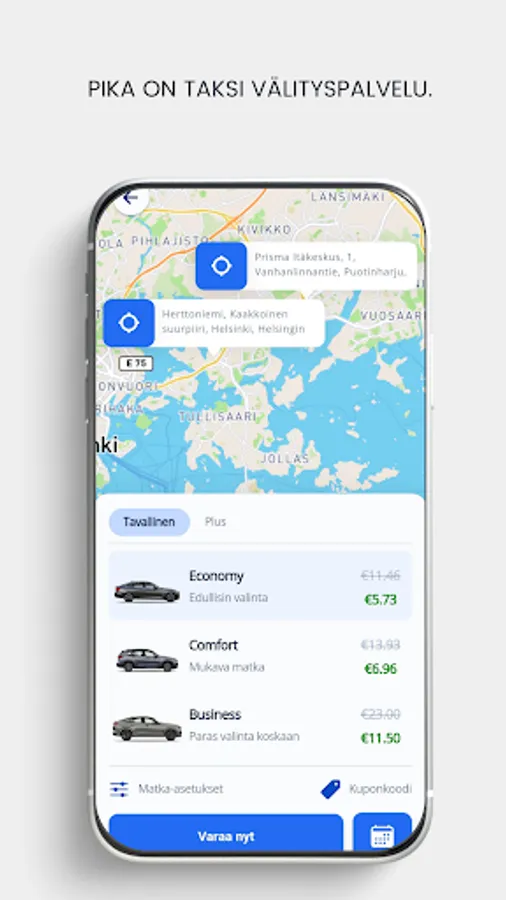 Pika Taksi has been developed to meet the needs of city dwellers and is a very flexible taxi service. Customers can order a taxi at any time and from anywhere in the Helsinki area. The application is also compatible with different payment methods, so customers can pay for the ride with cash, card or mobile wallet.
