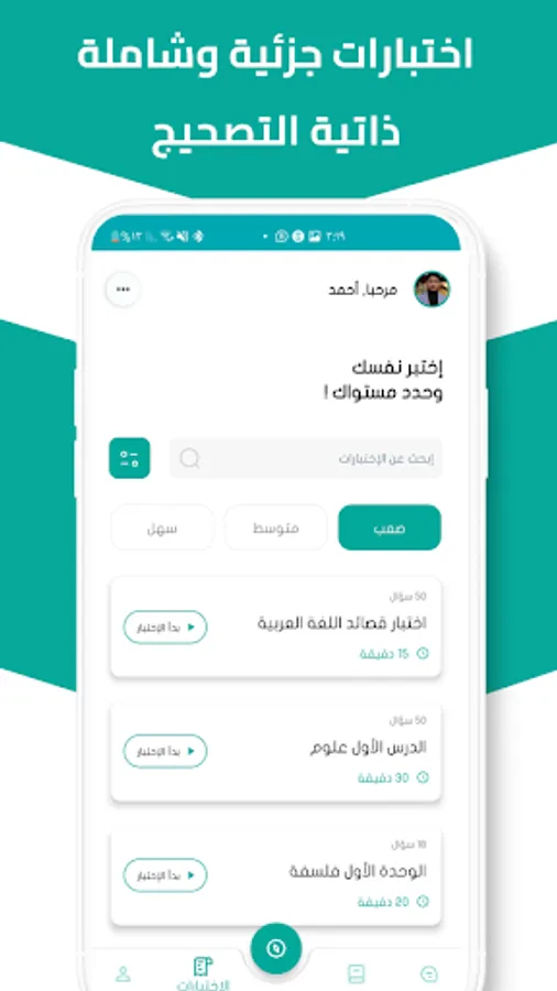 3_ Self-correcting exams for students of secondary education certificate (Baccalaureate) with calculating the answer time.