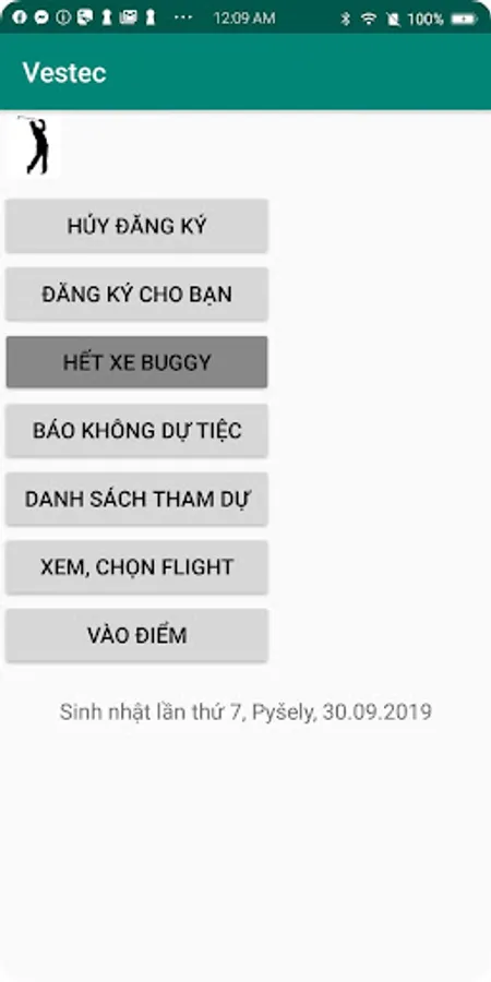Application to register tournaments, register buggy, arrange flights, choose your friends in flight, calculate playing HCP, calculate points for matches, save the results of all matches.