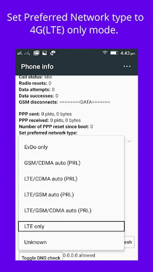 4G Only Network Mode opens a secret menu where advanced network configurations can be selected.