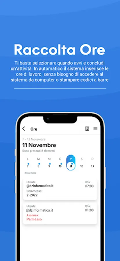 You just need a simple touch on the screen to associate working hours with customers and orders