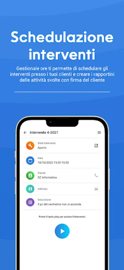 You can access your interventions from any PC or smartphone. It is not necessary to install any program to keep up to date, you just need to access the Hours Manager and you always have all the data you need available