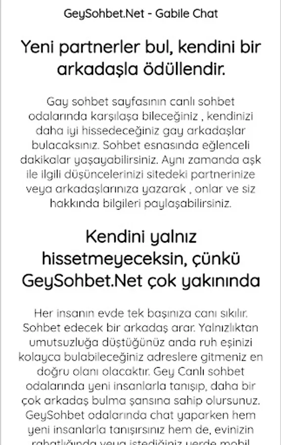 You will not feel alone, because GeySohbet.Net is very close