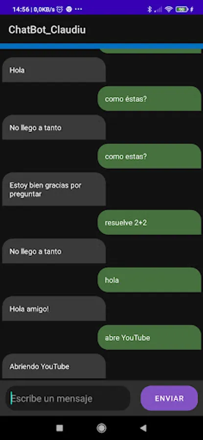 It is an application where you will be able to interact with an artificial intelligence such as the BOT, you can greet it and ask how its day is going, in addition to that you can tell it to open some applications such as YouTube or Google and to search for information on the Internet.