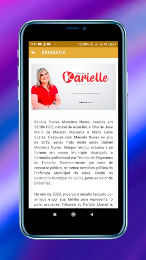 Karielle Soares Medeiros Nunes, born on 08/29/1983, born in Assú-RN, is the daughter of José Maria de Macedo Medeiros and Maria Lúcia Soares. He married Marcelo Nunes in 2012, as a result of this union Gabriel Medeiros Nunes. He has always resided, studied and graduated in our Municipality and achieved professional training in Occupational Safety Technician. Subsequently, through public tender, she became a public servant of the Municipality of Assú, located at the Municipal Health Department, next to the Endemic Care Sector. In 2020, he faced the challenge launched by friends and his family to represent the people of Assu. She joined the Liberal Party, and, on November 15 of that year, she was elected in the first election she ran with a total of 1,024 votes. After the beginning of the legislative work, the board of directors was elected as second secretary. And later she was chosen by the other peers to chair the Finance Committee of the Assú City Council.