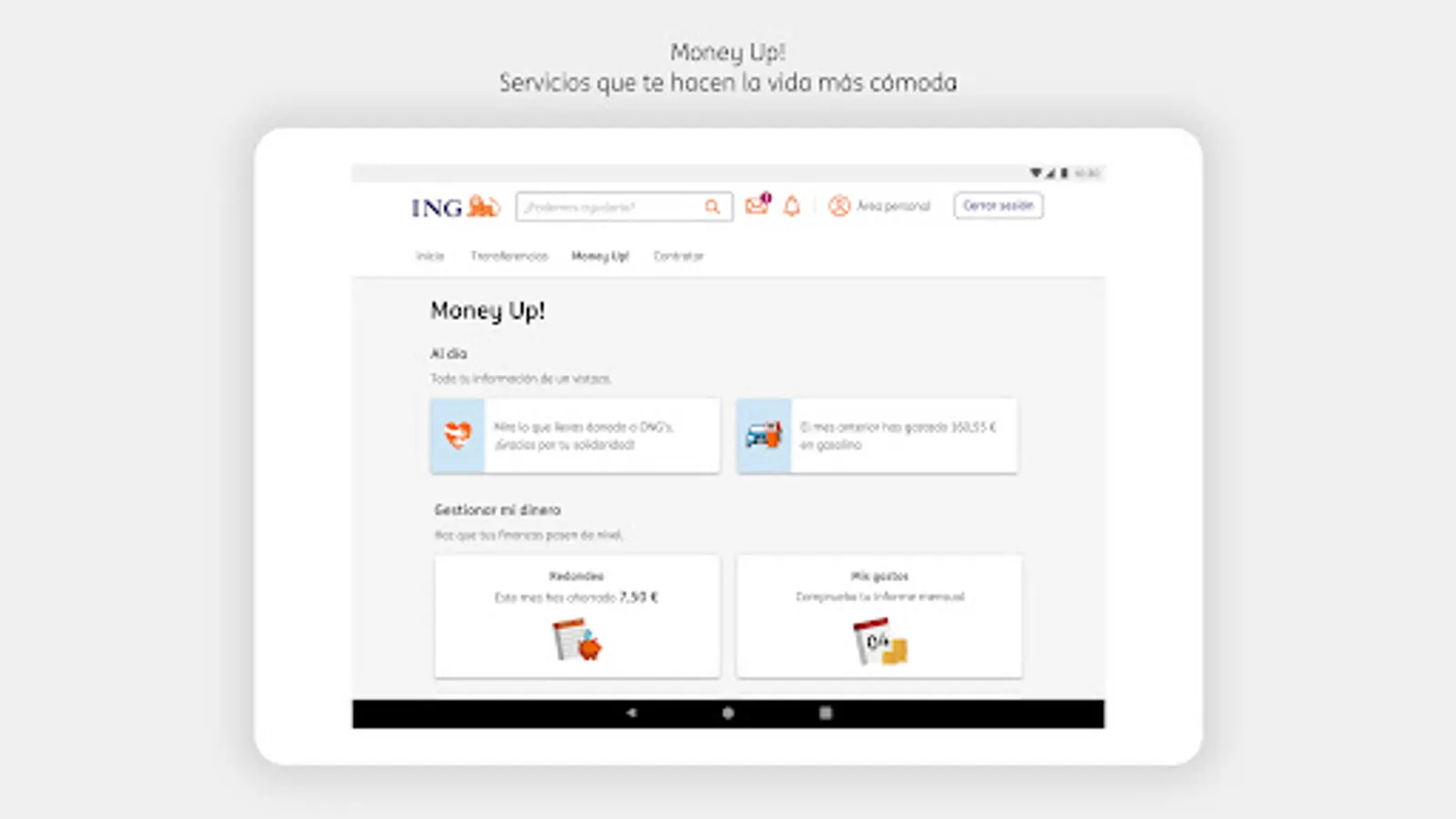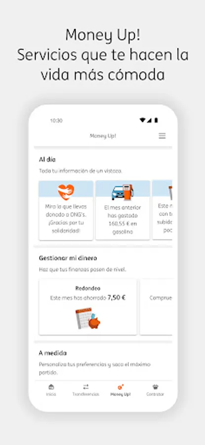 - Money Up!, with tools such as the Aggregator so you can check your accounts at other banks, or the Rounding and My Piggy Bank services so you can save almost without realizing it.