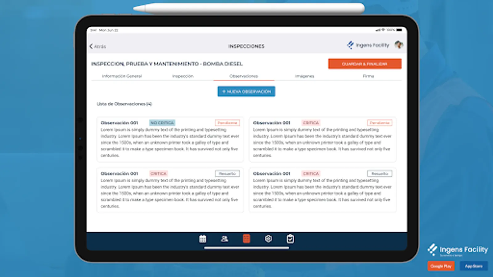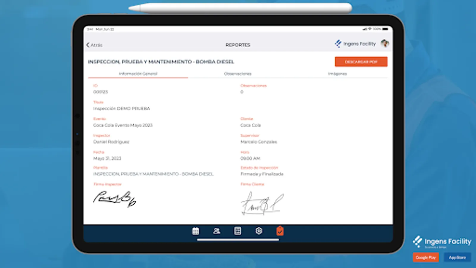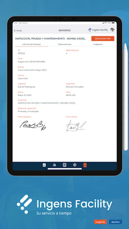 Management system to carry out inspections, tests and maintenance to the fire system, in an efficient and easy way to fill out, with this application we simplify the process of generating detailed reports of the state in which you find the fire prevention systems.