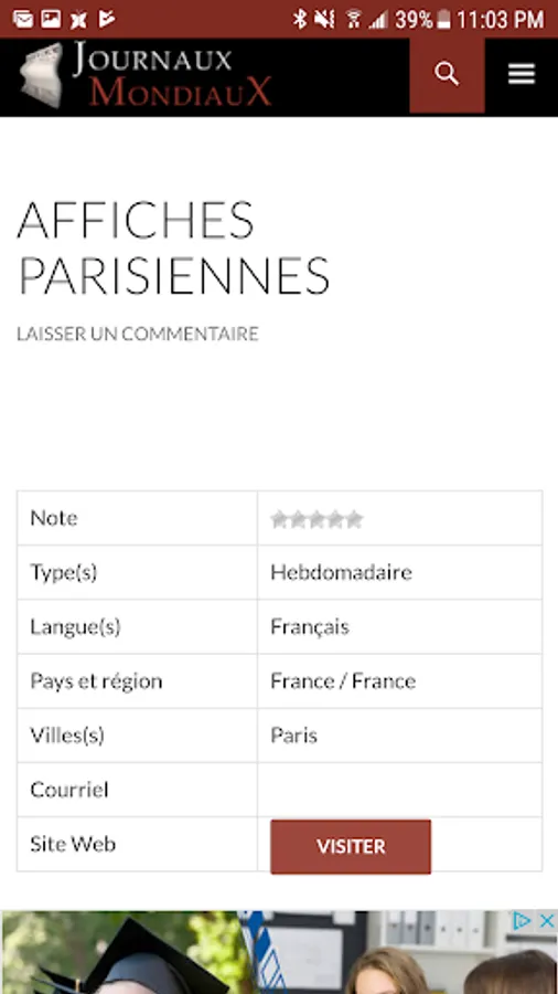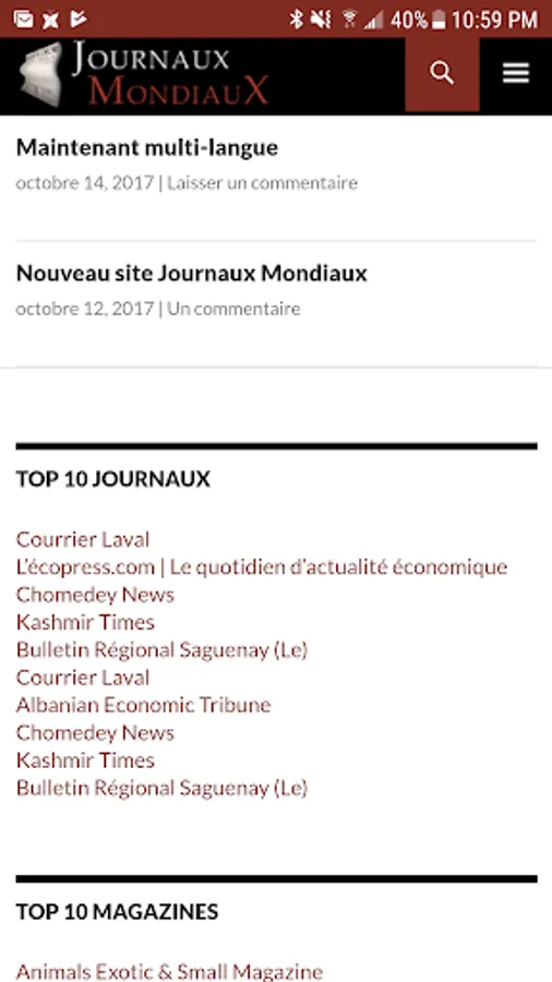 No affiliation between the application and newspapers or magazines. Newspapers Worldwide is a specialized directory aimed at well Guide you in your research. The search criteria are the countries, regions, cities, publication types, categories and languages.