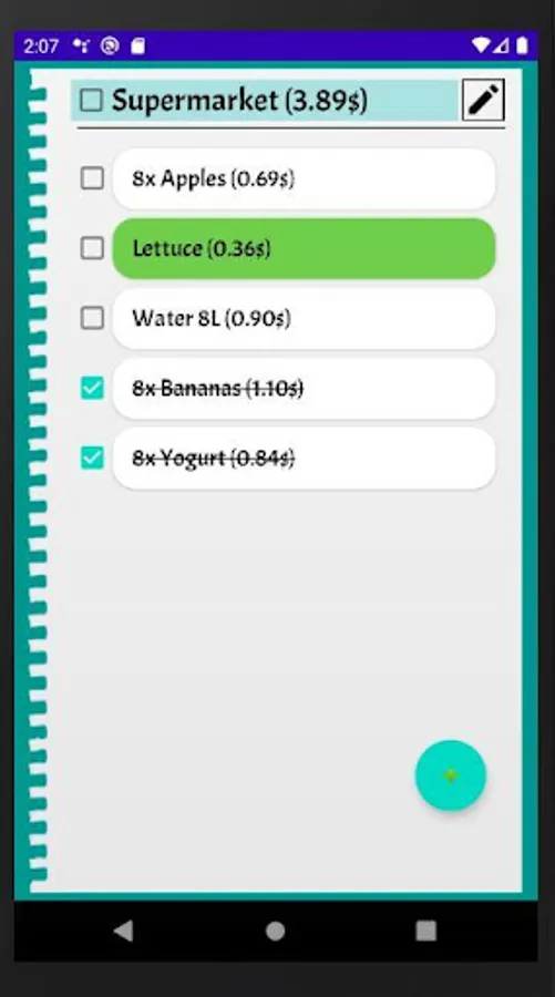 Products that have already been purchased can also be selected through a check. These will be roofed and placed at the end of the list, to have control at all times of the products that are still to be purchased.