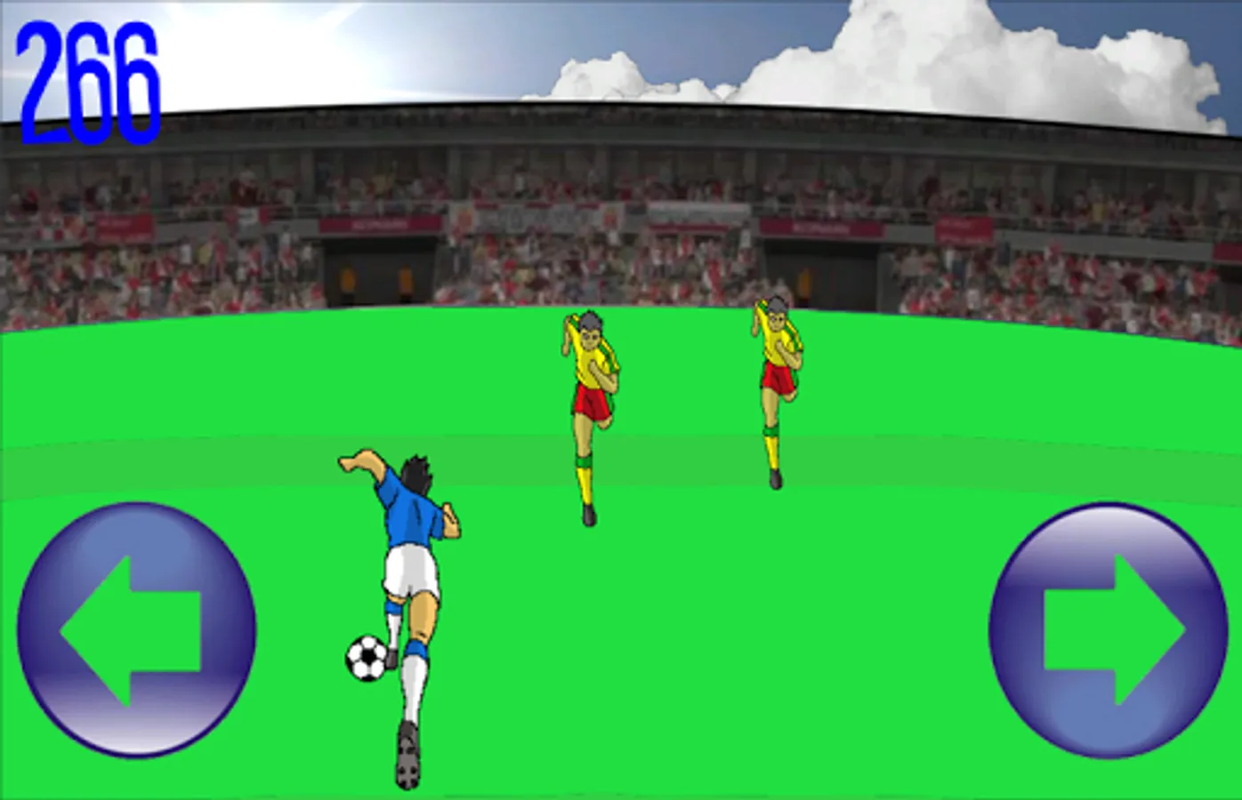 Dribble past your opponents to reach the goal. Make goals as the great soccer players.