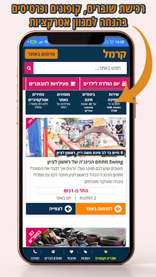 The Karamel app offers its users club benefits, vouchers, coupons, and discounts for a large variety of attractions, birthday and fun day activities, team building days, and many more event providers. The app serves as a platform connecting between suppliers and attraction owners to business and private clients, while simultaneously allowing you to enjoy help in any subject from the Karamel staff members.