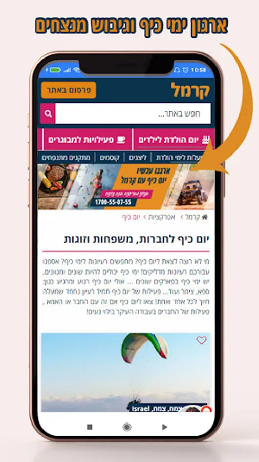 Karamel is Israel’s recreation portal, with over 8 years of experience in the recreation and culture field. In Karamel you will enjoy the largest supply of providers and business owners who offer their services to business and private clients in the attraction and event fields.